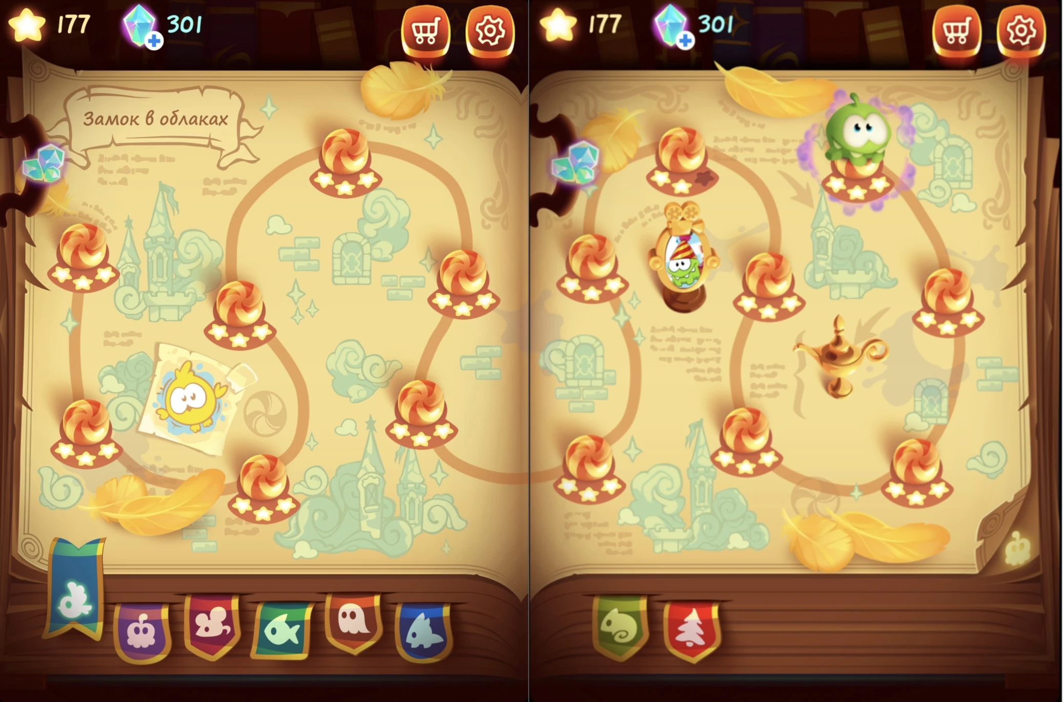 - Уровень 1.3. — на этом уровне впервые появляется первое превращение Ам Няма — Птица.